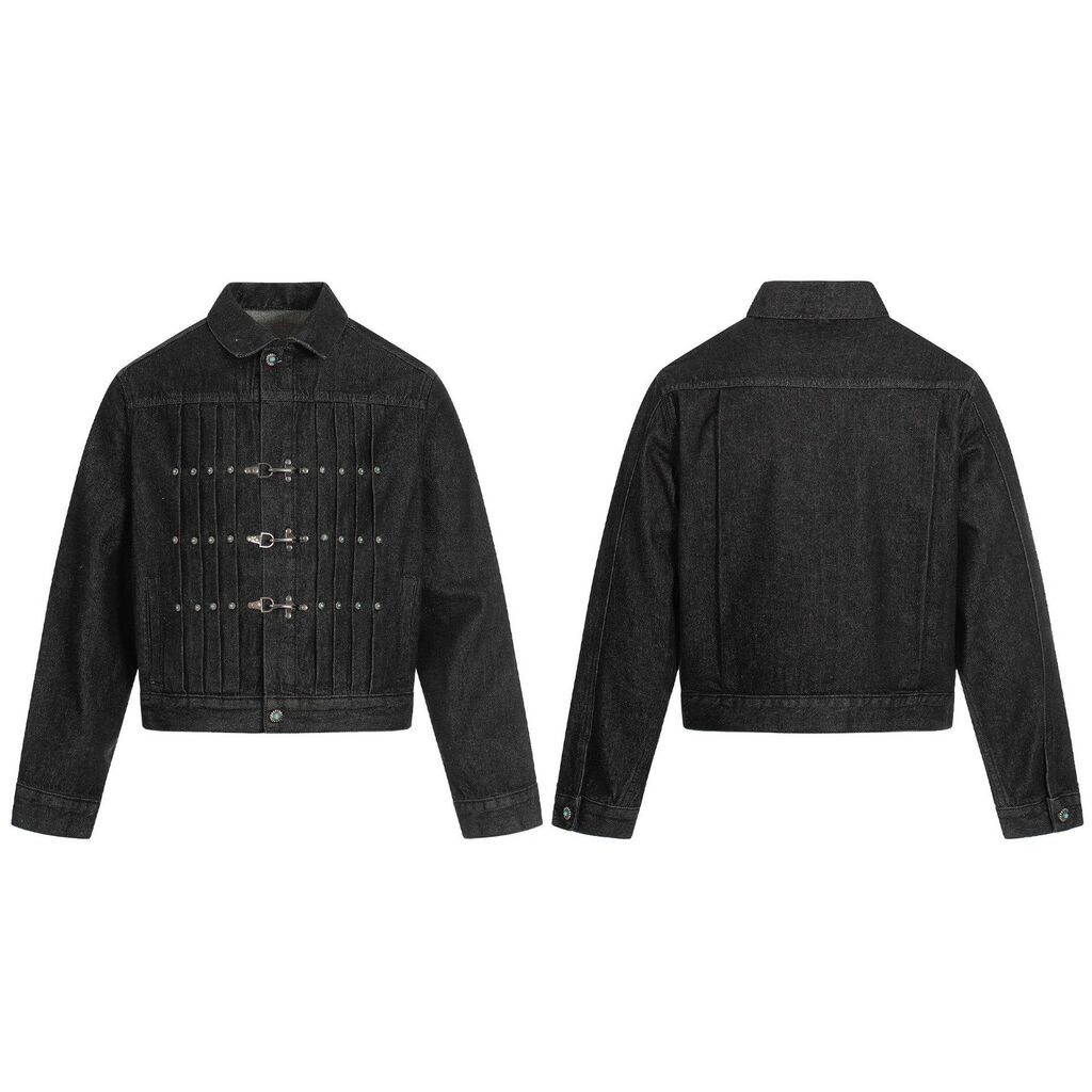首页 Jacket Autumn Winter Hip Hop Breathable Original Cow High-grade Pleated Metal Button Design Tops