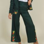 Lady’s fashionable suit set with green embroidered patterns