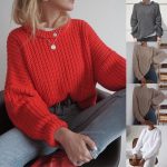 Round Neck Fashion Pullover Sweater Women’s Solid Color Loose Women’s Knitwear