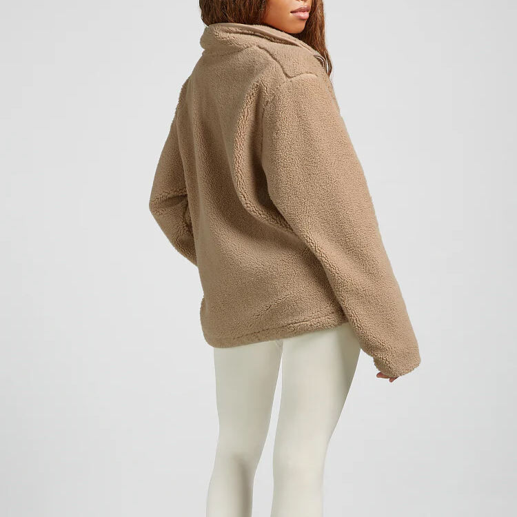 Factory OEM Manufacturers Fuzzy Polar Fleece Full Zip Jacket With Pockets for Women