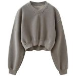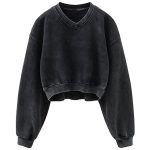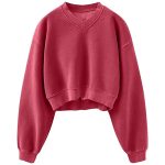 Women Acid Wash Athletic Hoodie Fleece V-neck Long Sleeve Hoodie Fleece Women Sweatshirt