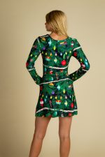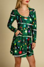 Women Printed Christmas Dress Long Sleeve Xmas Holiday a Line